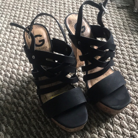 G by Guess Black Strappy cork bottom platform heels