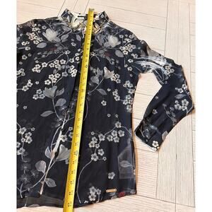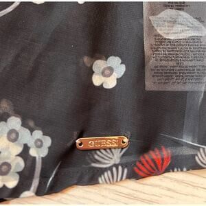 Guess poly button down embellished collar semi sheer floral print shirt. Sz S