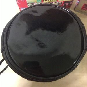 Black guess pouch. Draw string style. Nice heart pendant.