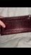 This trifold Guess wallet features a textured logo design and textured finish, complemented by its silver clasp. Its sleek and elegant design makes it a versatile accessory for any occasion. Super shiny, in some light it shines as a beautiful purple-wine color. Has a small mark on the inside where the fold is.