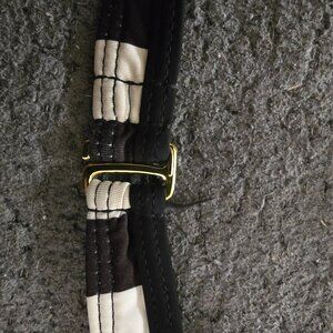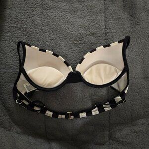 White and brown striped pushup bikini top with gold accents.