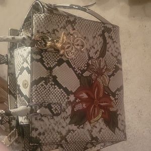 NWT Guess python print purse with flower detail. Beautiful bag!