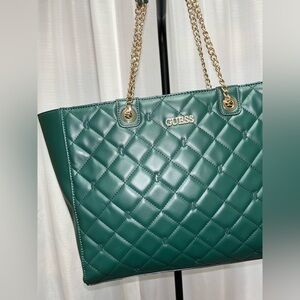 Guess quilted tote back in dark green with gold hardware NEW without tags