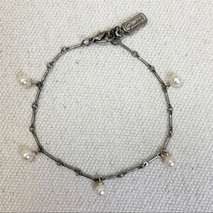Silver tone tube links with faux Pearl dangles - lobster clasp - gently worn, no flaws