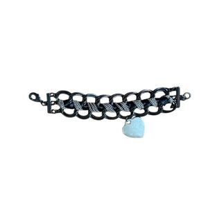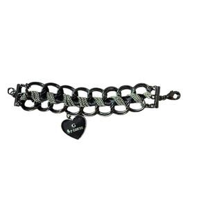 Guess silver and black 7" woven bracelet with dangle hart charm