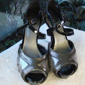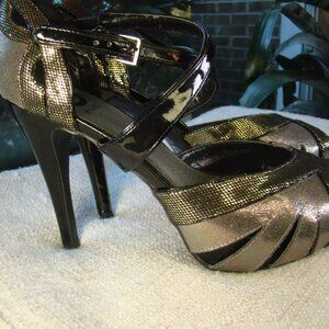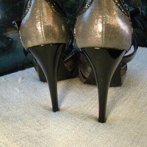 Guess silver patent black heel Multi Fabric Platform stiletto evening shoes, S 9