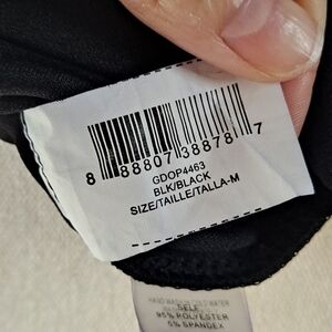 Black dress features a zip at the neckline and a mandarin style collar and cap sleeves. Guess Logo on the zipper. Easy to wear.