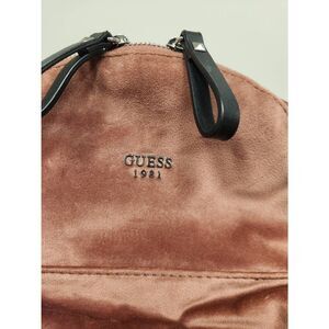 Guess small velvet feel pink backpack with black straps and pom. Measures approx 11 wide, 10 high and 5.5 deep (L)