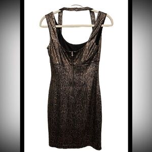 Guess snake print mini dress women’s size 4 sparkle glitter NWT brown gold
