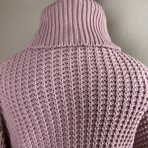 Guess Women's XL Chunky dropped shoulder generous elbow zip pullover sweater in blush with fold over loose turtle neck. Excellebt condition! Chest between axilla is 24", length from the bottom of collar to end of hem is 26". Thank you for your consideration of this beautiful blush chunky sweatee in excellent condition from Guess !