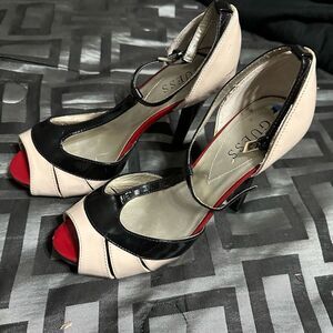 Shoe length 9.”, widest part in width 3”, Heel 5”