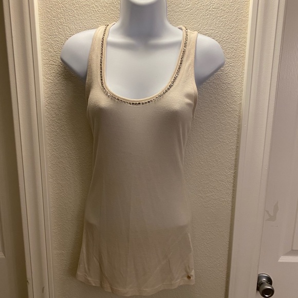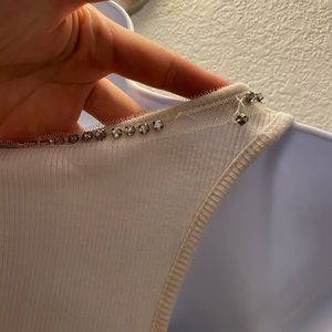 Muscle top with rhinestones at neck area with some flaws some are missing on the back side of neck