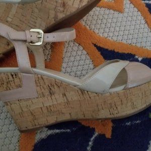 Guess Nude Strappy Cork Platform Wedges Sz 10M