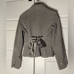 Elevate your style with this stunning velour jacket! Crafted with care and in excellent used condition (EUC), this jacket boasts a timeless design with a unique twist. The elegant back bow detail adds a touch of sophistication, while the shoulder pads provide structure and flair. Whether you're heading out for a night on the town or a casual gathering, this jacket is the perfect choice. Embrace comfort and fashion effortlessly with this must-have piece!