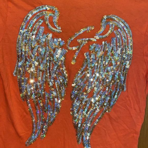 G by Guess tee size Xs has beautiful gold/silver angel wings on back. Excellent condition maybe worn once