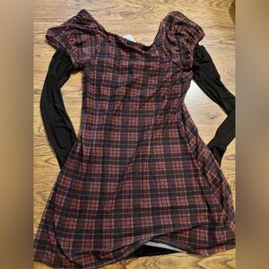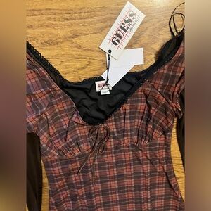 Guess vtg nwt check mesh mini dress mesh sleeve 90s school plaid sheer L