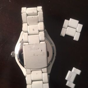 Guess painted metal watch with extra links. Some scratches on the underside, see picture.