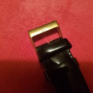 Guess patent leather watch. Black band. Gold and diamond face. No scratches. Only worn once. No missing diamonds. Like new