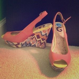 G by Guess adorable wedges that are perfect for any outing. Colorful and will make a statement. Never before worn. Price is negotiable.
