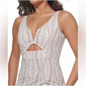 Guess | white and nude embroidered mesh sleeveless sheath dress | size 12 NWT