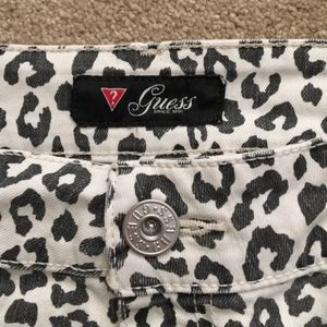 Guess white cheetah print denim shorts