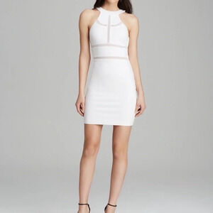 Sexy yet classy white dress. Thick quality fabric. Fully lined. Nylon spandex poly. Stretchy. Side zip closure with double buttons at neck. 15.5” across chest and 34” long without stretching during wear.
