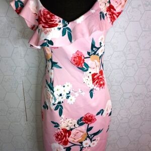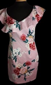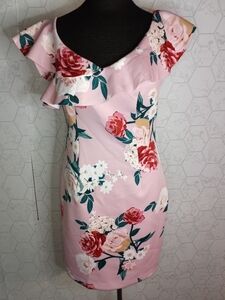 Guess womans convertible off the shoulder to one shoulder floral ruffle dress