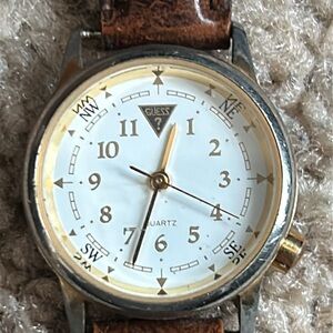 Gently used great condition Guess women’s vintage dainty gold tone adjustable watch one size measurements shown needs a new battery