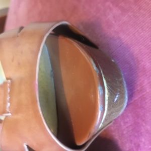 Absolutely gorgeous wooden wedges ๐๐ faux leather yet very nice quality straps and clasps. Slightly scuffed on fronts,. Not noticeable when wearing .