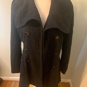 Guess double breasted wool blend black pea coat, size M..has brass buttons..gently used.. has extra button included..Measures 20” Pit to pit..