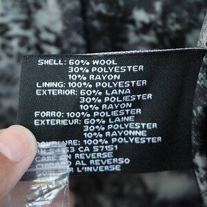 -shell is 60% wool, 30% polyester, 10% rayon and the lining is 100% polyester
