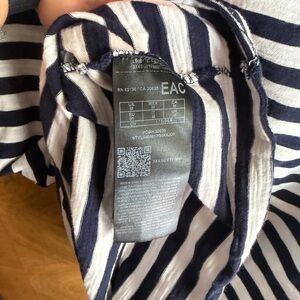 Classic navy and white stripes. Soft fabric. Crew neckline.