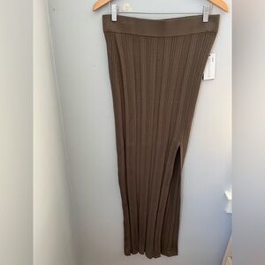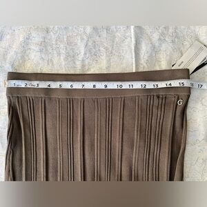 This elegant green maxi skirt by Guess showcases a beautiful ribbed knit texture that enhances its stylish appeal. The skirt features a flared silhouette that adds graceful movement, making it perfect for various occasions. Its design ensures a comfortable fit while maintaining a chic look.