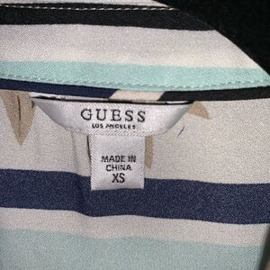 Short sleeve, cold shoulder floral blouse. Collar with four front buttons. Ruffled middle. Floral with navy and sky blue stripes. Multicolor. Size: XS. EUC
