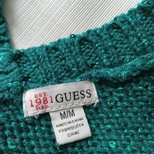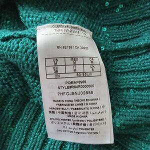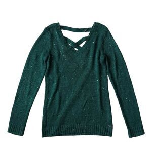 Guess Blue Green Knit V-Neck Sequins Crisscross Pullover Sweater Women's Medium