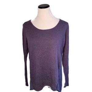 Guess top with sweater front and sheer back. Round neck and overall stretch. Armpit-to-armpit 20”, sleeve 23” and length 26” in front and 30” in back.