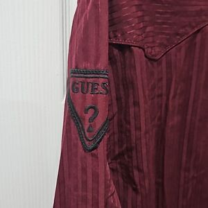 BNWT Guess button down. logo on sleeve, size XL. Burgundy color