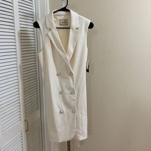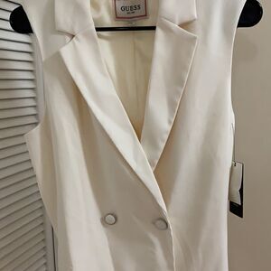 GUESS BLAZER DRESS front button closure Self tie belt A- line silhouette Sleeveless Dry clean
