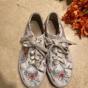 Guess Floral Sneakers Size 8 Man made floral uppers Rubber soles with minor wear Nice shoes!