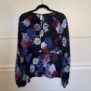 Guess Flowing Long Sleeve Floral Blouse - Black/white/Purple SIZE M
