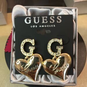 Guess Gold Crystal G Heart Earrings. Brand new and comes in the gift box pictured.