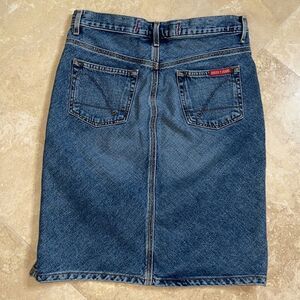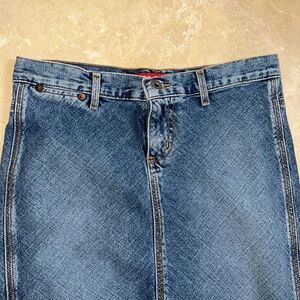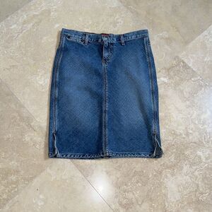 Brand new. Never worn. Size 27. Guess Jean skirt. For reference I’m 5’0 and 115 lbs. 34B.