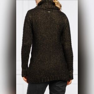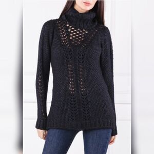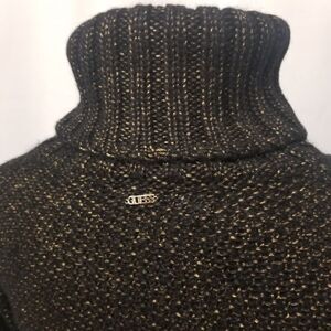 Guess Lorita Turtleneck Open Knit Wool Blend Sexy Sweater Black Yellow Gold