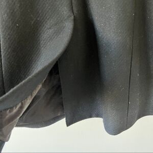 Guess Los Angeles Black Wool Blend Sparkle Hooded Mid-Length Coat. Faux Suede and bead detail. Two zipper pockets. Slight sparkle/glitter throughout. Slight flare at the hem. 42% wool 29% polyester 25% rayon 4% other. Does not have size tag but fits like a medium (see measurements). Excellent used condition!