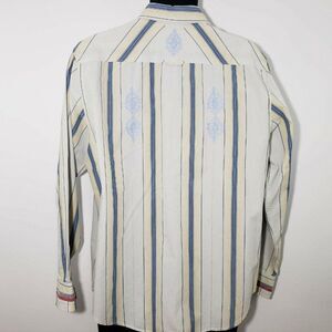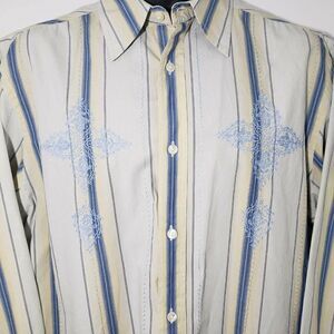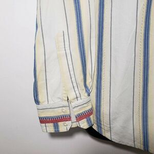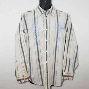 Guess Mens Striped Long Sleeve Shirt L Button Front Blue Yellow Embroidered