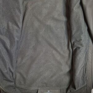 Size XL. Zips up in the front. Three front pockets with velcro at the bottom of the sleeves. Fully lined. Excellent condition !