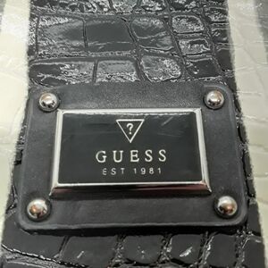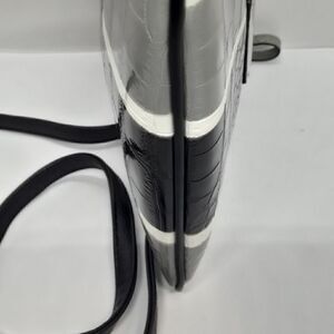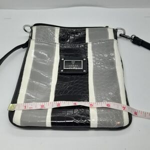 Guess Mini Crossbody Purse Zip Up Shoulder Bag Stripped White/Grey/Black Leather Pre-Owned Good Condition