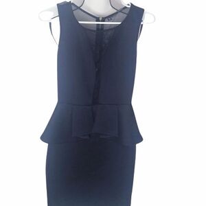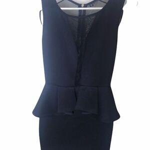 Absolutely stunning Guess Black peplum dress with mesh long vneck and mesh open back.