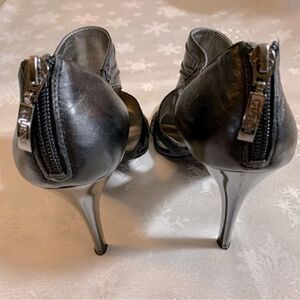 Guess Stiletto Heels Back Zip Black Leather Sz 7 some inside wear see pics