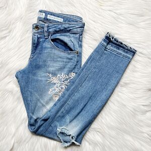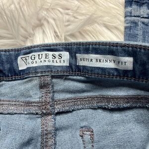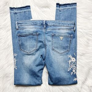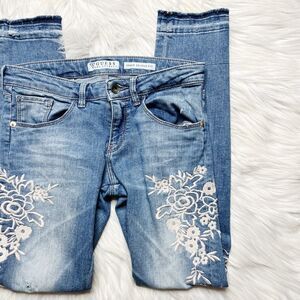 Guess Super Skinny Fit Embroidered Distressed Skinny Jeans Light Wash Size 12